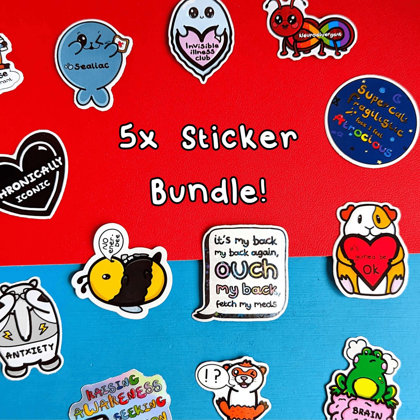 Give your laptop, journal, or whatever else you want to stick 'em on an unmissable makeover with our 5 x Sticker Bundle! This vinyl set, featuring stickers of Chronic Illness and Invisible Illness, will no doubt make a visible statement. So express yourself — it's easy as one, two, stick!