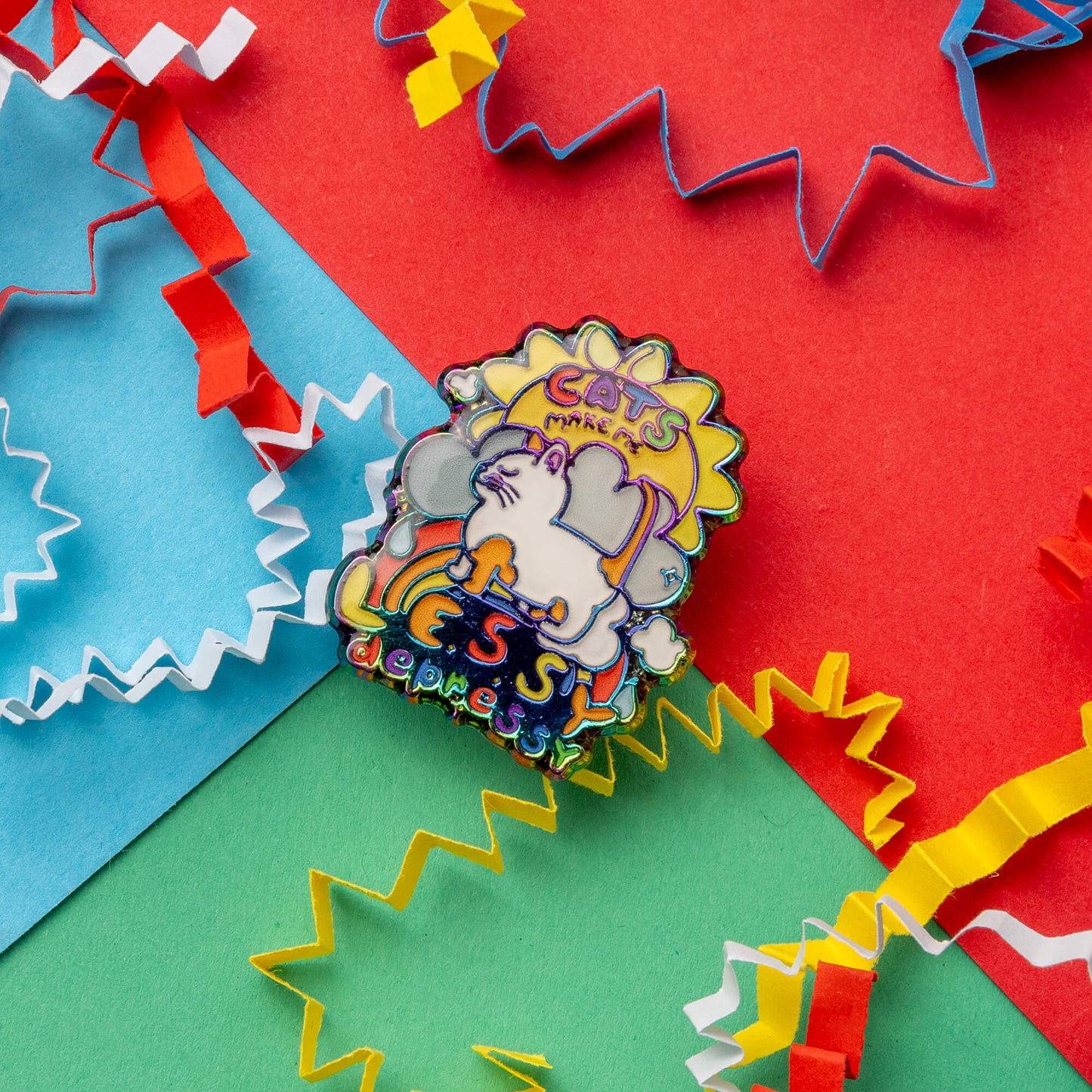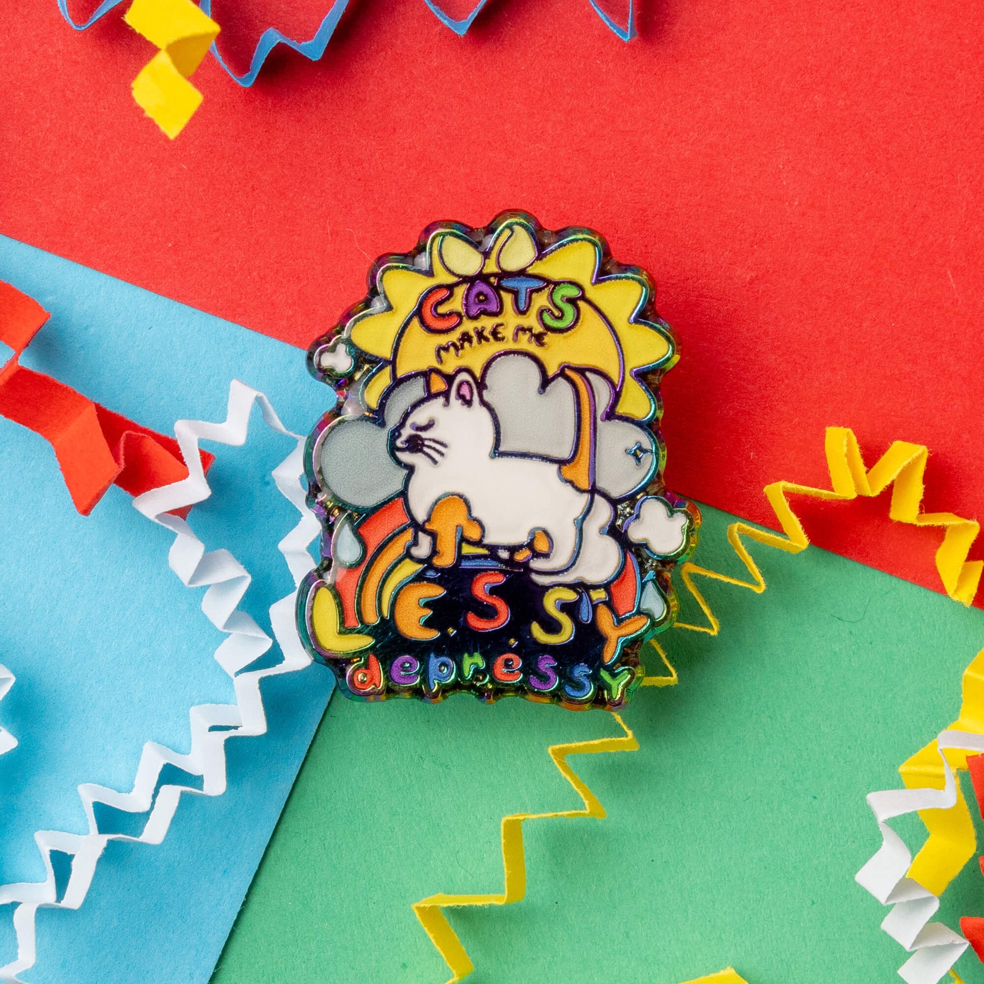 Cats Make Me Lessy Depressy Rainbow Enamel Pin