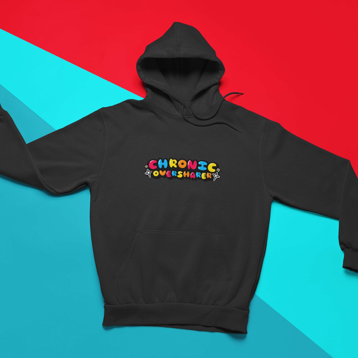 Gear up with our Chronic Over Sharer Black Hoodie! Perfect for all you chronic over-sharers out there, this hoodie is a must-have for any casual wardrobe. Keep warm and show off your unique sense of humour with this fun and quirky design. (But don't share this hoodie, it's just for you!)