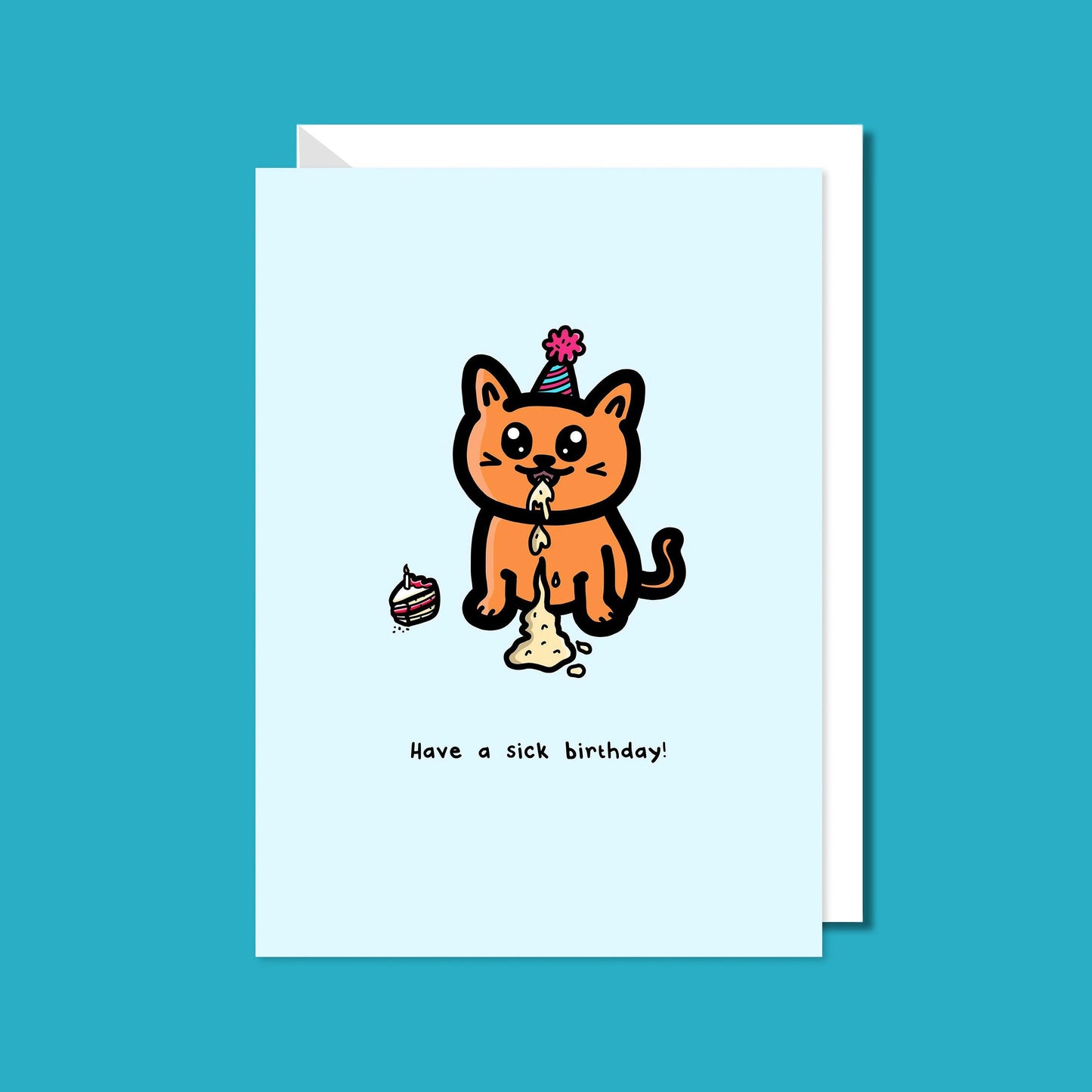 Celebrate in style with this purr-fect birthday card! Featuring a sick kitty with a party hat, this card will have everyone feline good. With a playful and quirky tone, this card is the perfect way to wish someone a happy birthday in a unique and fun way.