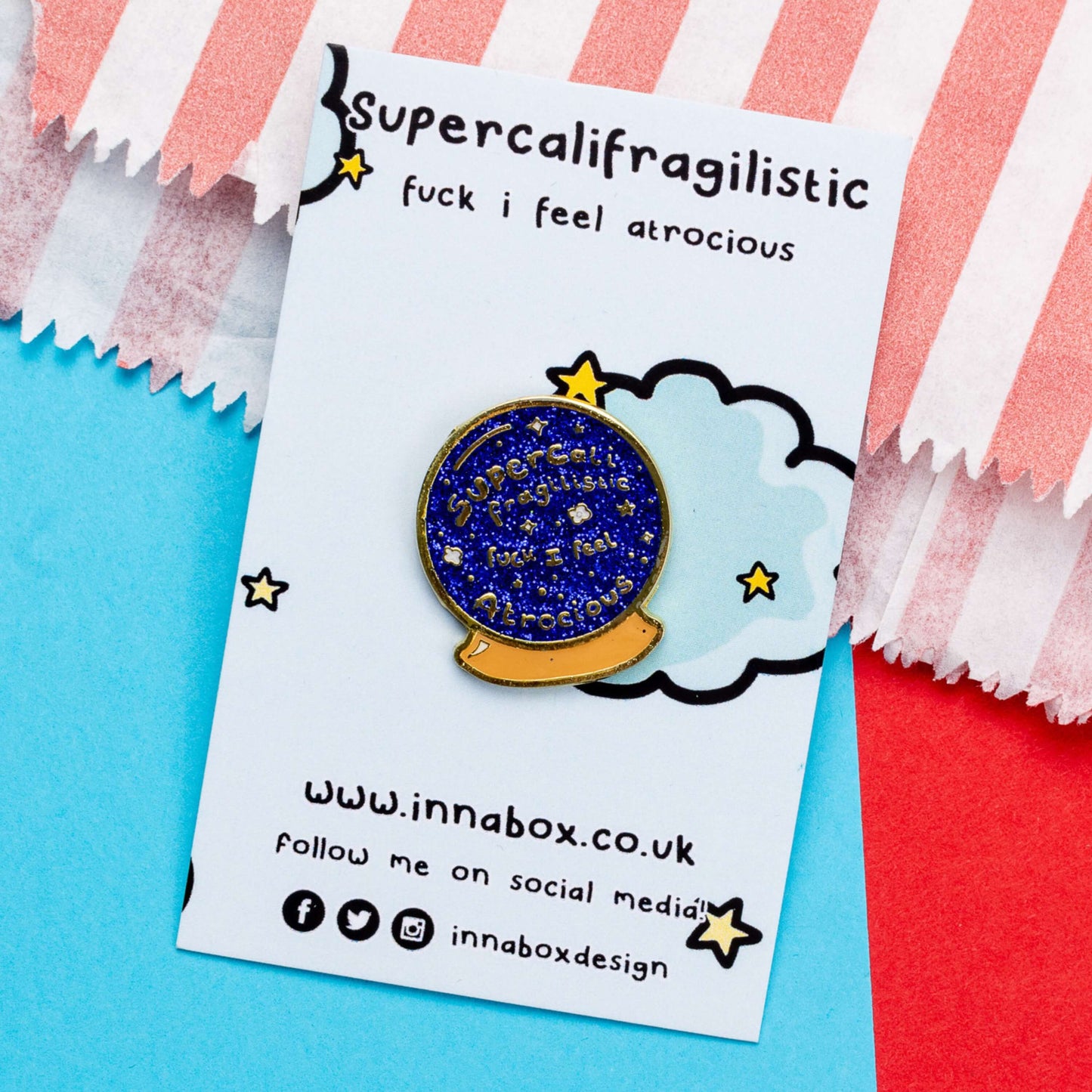 Let people know how atrocious you feel with this humorous pin! Invisible illnesses can't be seen! This pin badge is perfect for anyone who is living with chronic illness, chronic fatigue, or any other form of disability. Not only is this pin bold and full of glitter, but it also makes a great awareness gift.