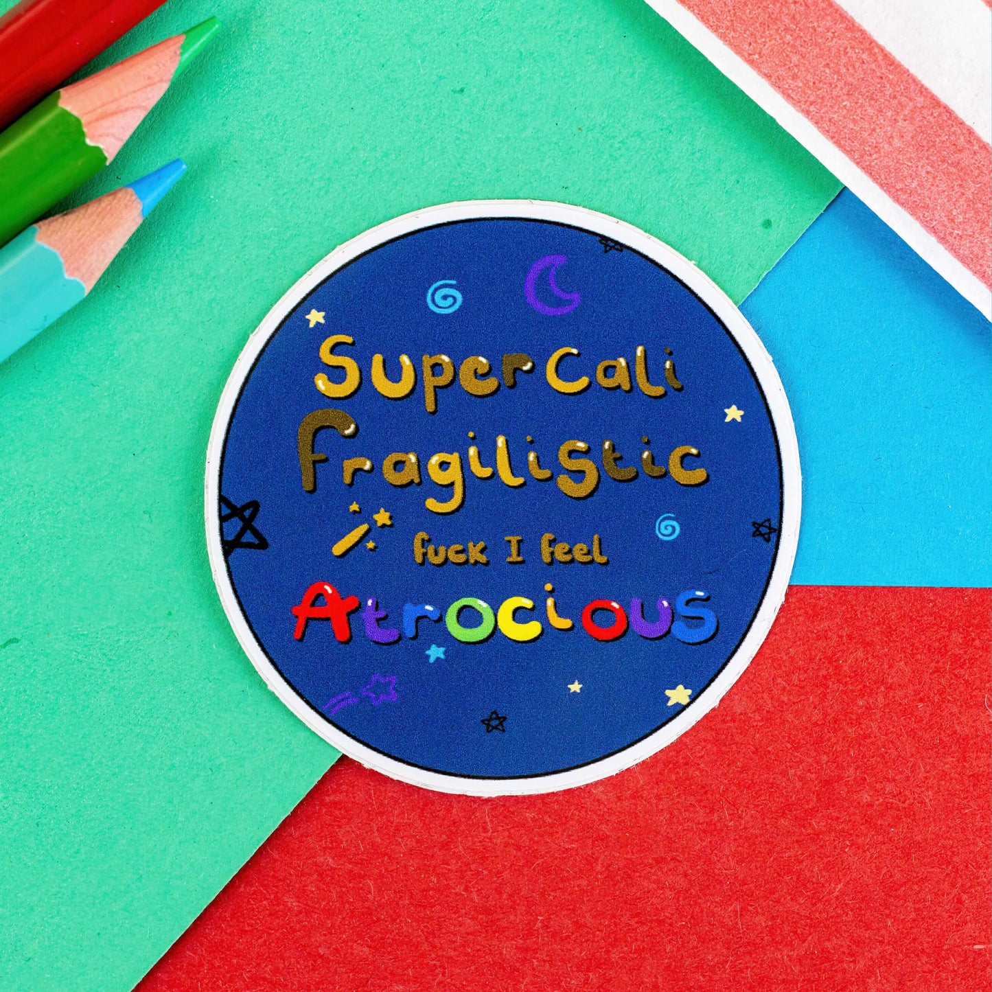 Introducing the "I Feel Atrocious" sticker - perfect for when you're feeling terrible or just in a silly mood. Express your emotions in a unique way with this fun and quirky sticker. Stick it on your laptop, phone, or water bottle for an added touch of humour.