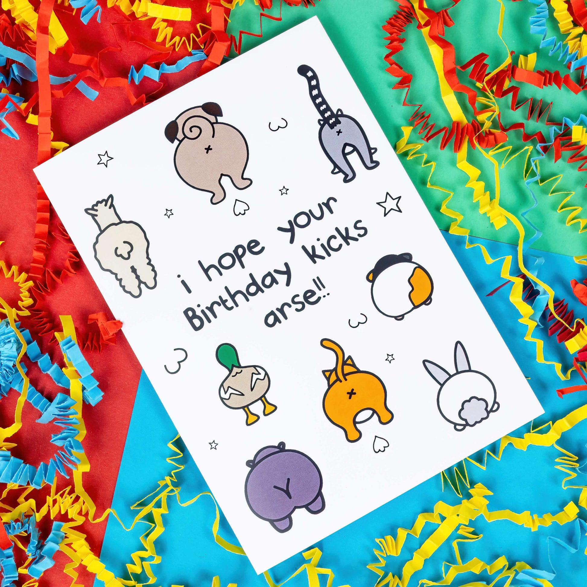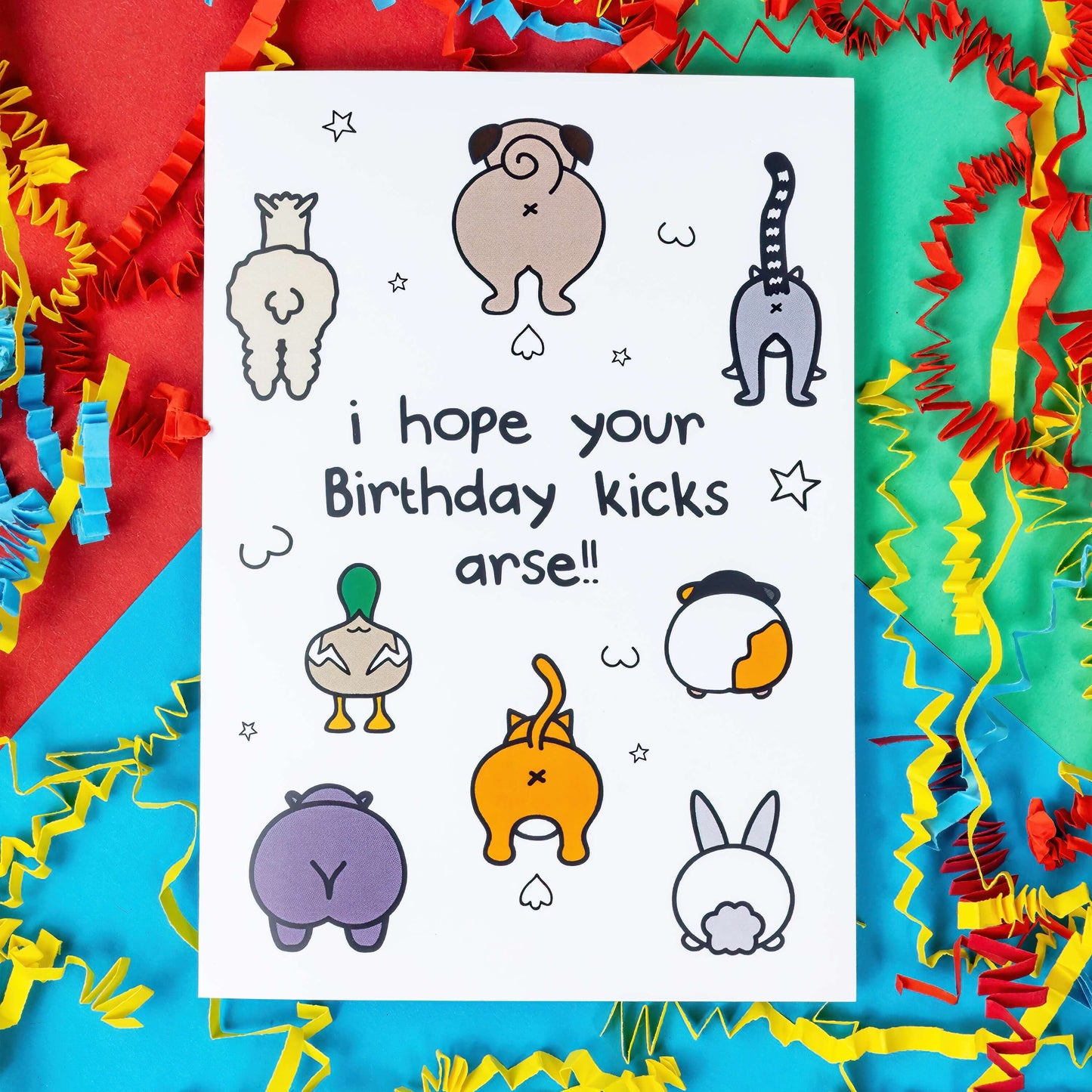 Celebrate someone's birthday with a kickass card! Featuring the playful phrase "I Hope Your Birthday Kicks Arse," this A6 card is sure to bring a smile to anyone's face. Show them you care with some humour and wordplay.