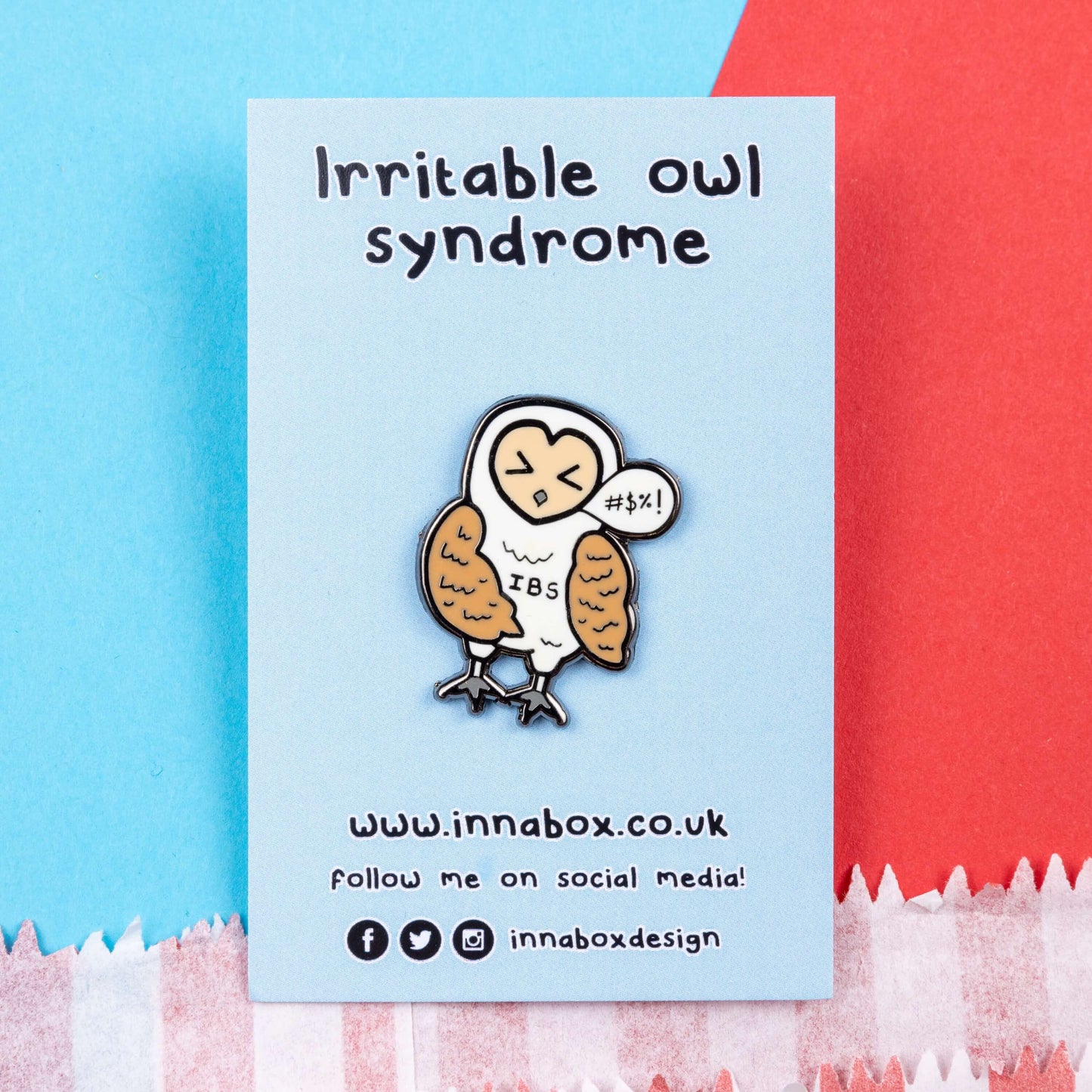 Raise awareness with our Irritable Owl Syndrome Enamel Pin! Featuring a comical play on words, this pin is perfect for those with a sense of humour. Add some flair to your outfit and raise awareness for Irritable Bowel Syndrome (IBS).