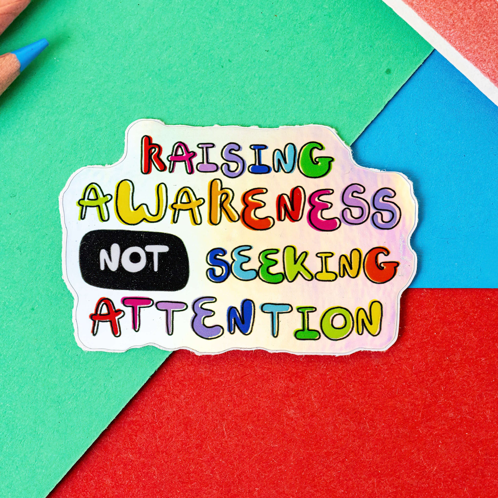 Spread a positive message with our Raising Awareness Not Seeking Attention sticker. Shine a light on the invisible and get the conversation started with this eye-popping holographic sticker!