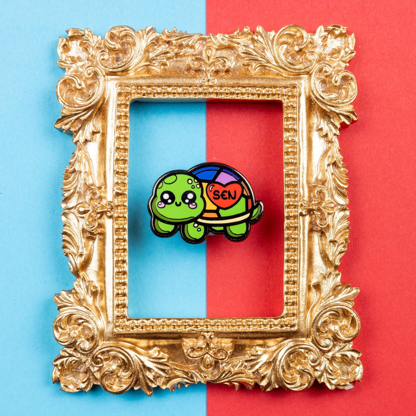 Get ready to add some flair to your outfit with our tortoise SEN enamel pin, great for teachers! Perfect for those with a sense of humour, this pin showcases the importance of special educational needs (SEN) in a playful and punny way!